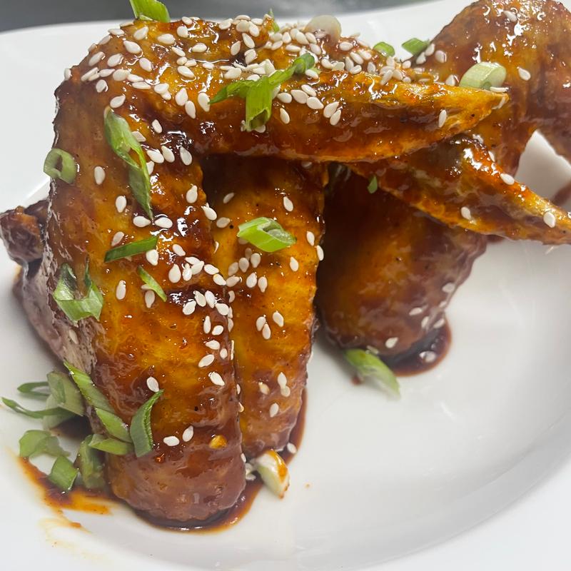 Whole wings brined in a salt-and-spice seasoned water, then tossed in our gochujang-based secret sauce with a perfect balance of heat and sweetness.